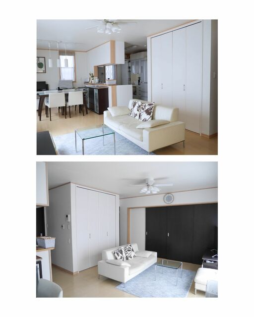 リビングは家族が集まる場所であり、所有者の違うモノが集まる場所。